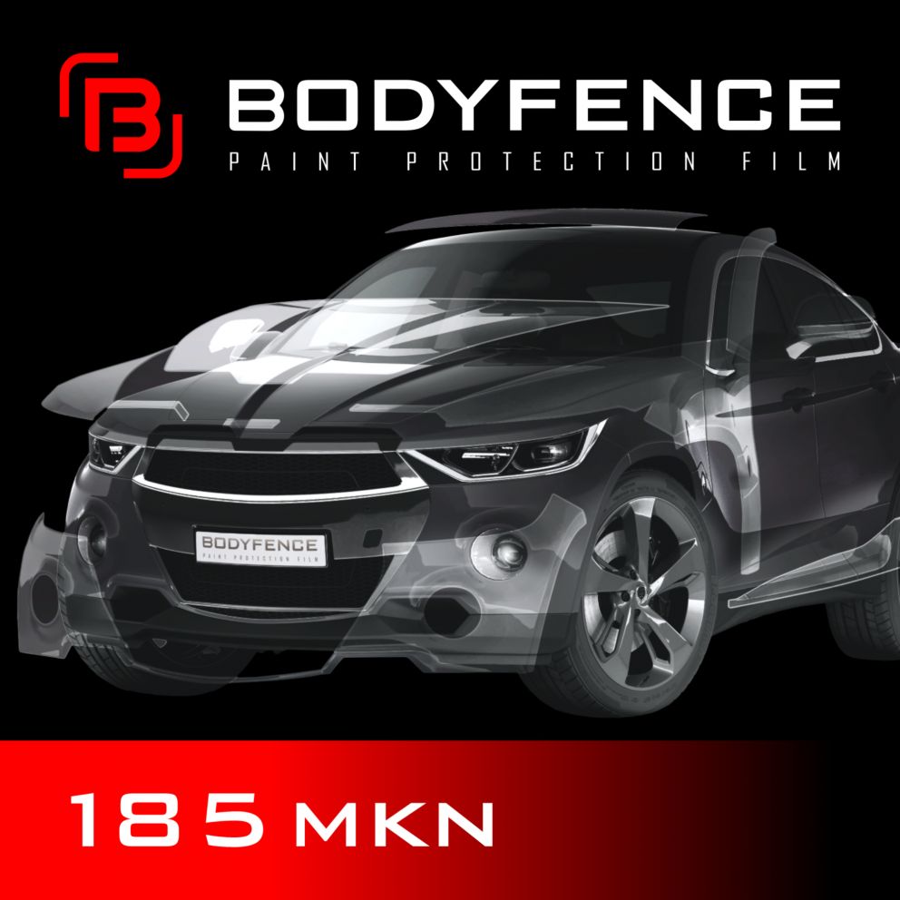 Прозрачная самоклеящаяся полиуретановая пленка Bodyfence толщиной 185 микрон, разработана специально для защиты кузова транспортных средств, дверных порогов, переднего и заднего бамперов и окрашенных частей зеркал заднего вида. Благодаря своим отличным противоударным свойствам, она помогает защитить лакокрасочное покрытие автомобиля от сколов, возникающих на поверхности от летящего гравия, царапин, мелких вмятин, битумных пятен, насекомых, повреждений на автомойке. Благодаря специальному защитному покрытию, пленка обладает эффектом самовосстановления, имеет кристальную прозрачность (практически отсутствие шагрени), не желтеет даже через весьма продолжительное время, легко очищается за счет гидрофобного эффекта. Срок службы пленки в средних климатических широтах не менее семи лет при условии хорошего дорожного покрытитя. Производитель Hexis...