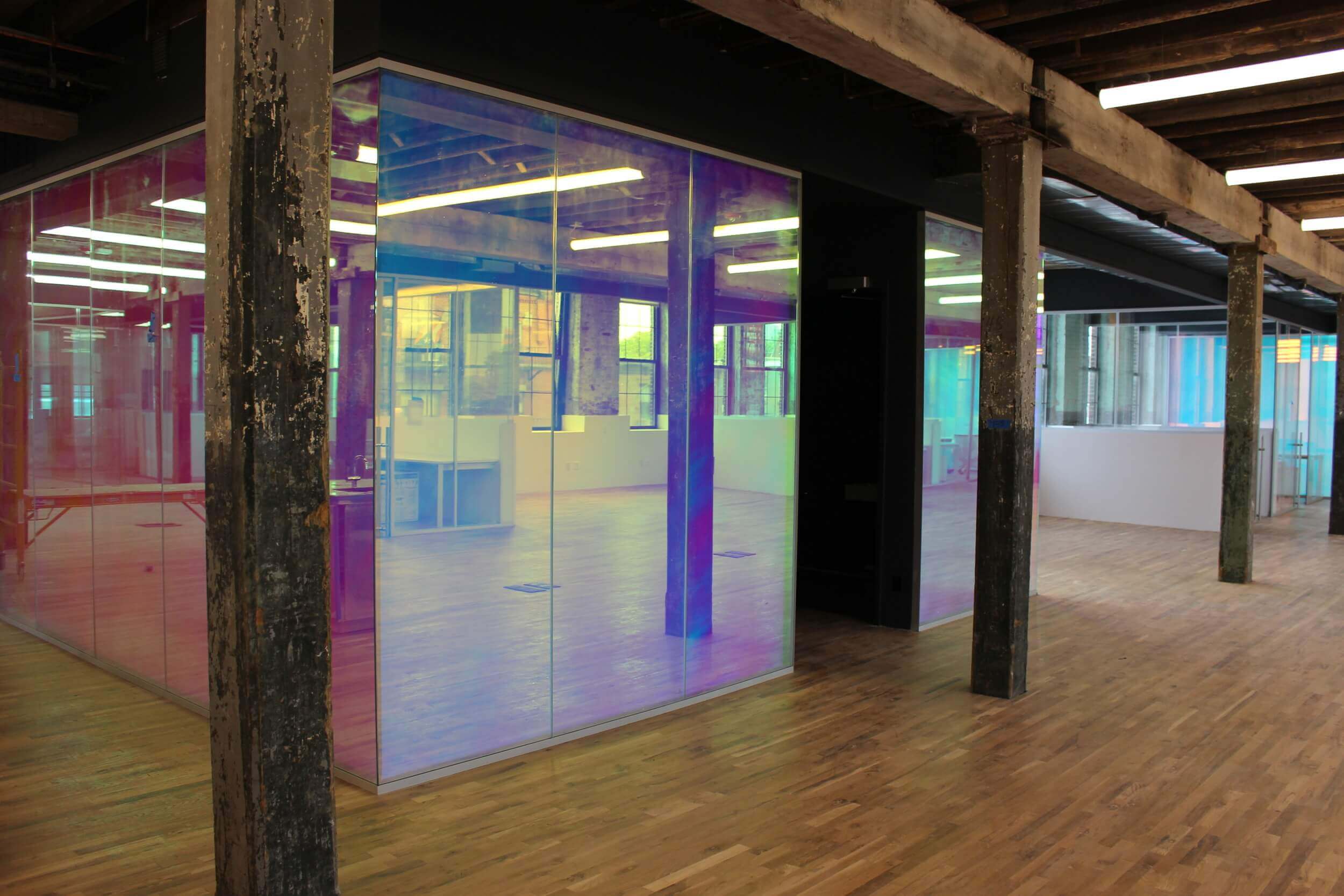 DC DICHROIC FILM — это инновационная декоративная пленка, способная варьировать цвет стекла в зависимости от угла обзора и источника света. Дихроичные пленки придают стеклу уникальный декоративный эффект. Разработана для использования в различных внутренних помещениях, таких как офисы, дома, внутренние перегородки и окна. Поможет создавать незабываемый эффект в магазинах , лофтах, кафе и при подготовке к выставке или презентации.